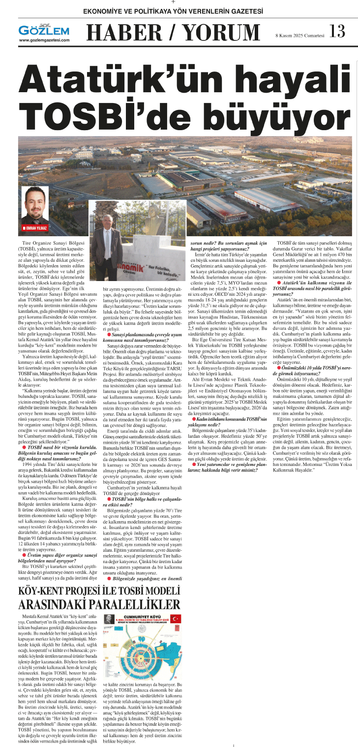 Gözlem Gazetesi: Atatürk’ün Hayalı TOSBİ’de Büyüyor